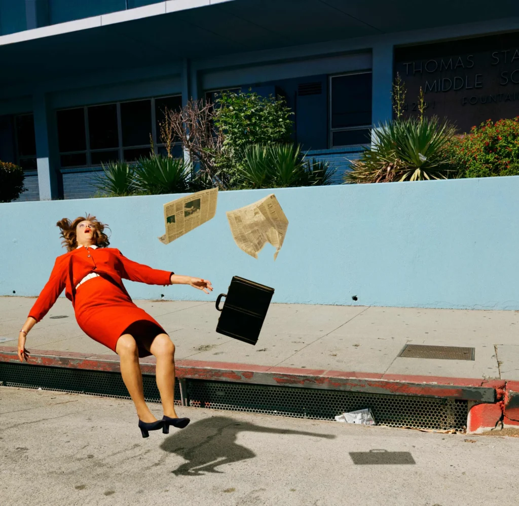 Tomando referencias estéticas del cine, la fotografía de moda, la novela pulp y su ciudad natal de Los Ángeles, Alex Prager crea fotografías en tecnicolor con oscuros y perturbadores trasfondos. «Encuentro mi inspiración en la ciudad de Los Ángeles», explica. «Es una extraña imagen de perfección, pero hay una monótona inquietud que se abre paso. Esa sensación de desasosiego bajo toda esta belleza y promesa puede volver loco a cualquiera poco a poco». Pobladas por mujeres seductoramente estilizadas, las fotografías de Prager recuerdan a fotogramas de antiguas películas de Hollywood. Construye escenas ambiguas, cargadas con la incómoda expectativa de un peligro inminente. En su obra abundan las referencias al cine de Alfred Hitchcock y David Lynch y a las fotografías de Cindy Sherman y Gregory Crewdson. (Artsy).
