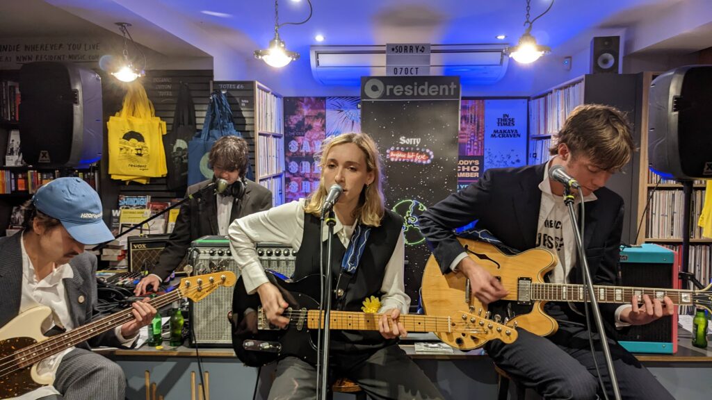 Un fundido en negro y después… estamos en octubre de 2022 en Brighton, en la presentación de su segundo álbum, Anywhere But Here, en la tienda de discos Resident, donde nos firman el disco y hablamos bastante animosamente (y yo paso bastante maleducadamente del resto de miembros del grupo, porque yo con quien quiero hablar es con Louis y Asha). Les contamos que los hemos visto ya varias veces y que unos días después iremos a verlos… a París (supongo que para resarcirnos para aquellos de la pandemia que nunca sucedieron). Ya en la capital francesa, veo justo antes del concierto en el bar de al lado de la sala a Louis, intento hablar con él, pero ni me reconoce de Brighton ni parece con demasiadas ganas de charla, así que le doy las gracias, le deseo un buen concierto y no lo molesto más.